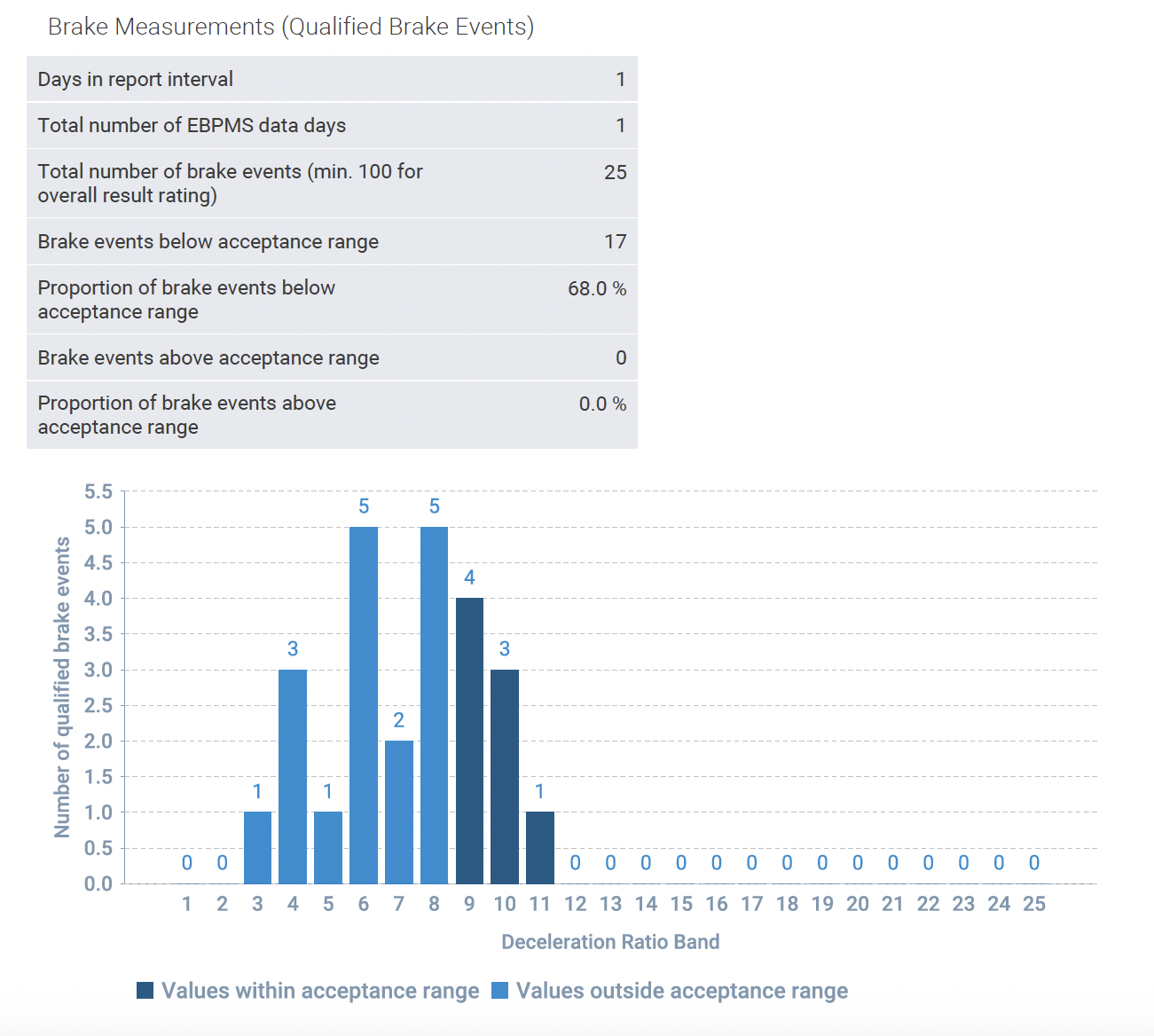 EBPMS analysiert während der Fahrt sämtliche Bremsvorgänge und kombiniert sie mit weiteren Daten des Telematiksystems. Abweichungen von der Sollleistung werden sofort erkannt und gemeldet. Dadurch lässt sich der Zustand der Bremsanlage im realen Fahrbetrieb – unter Last und mit Ladung – präzise bewerten. Technische Probleme werden frühzeitig sichtbar, lange bevor sie die Verkehrssicherheit gefährden.