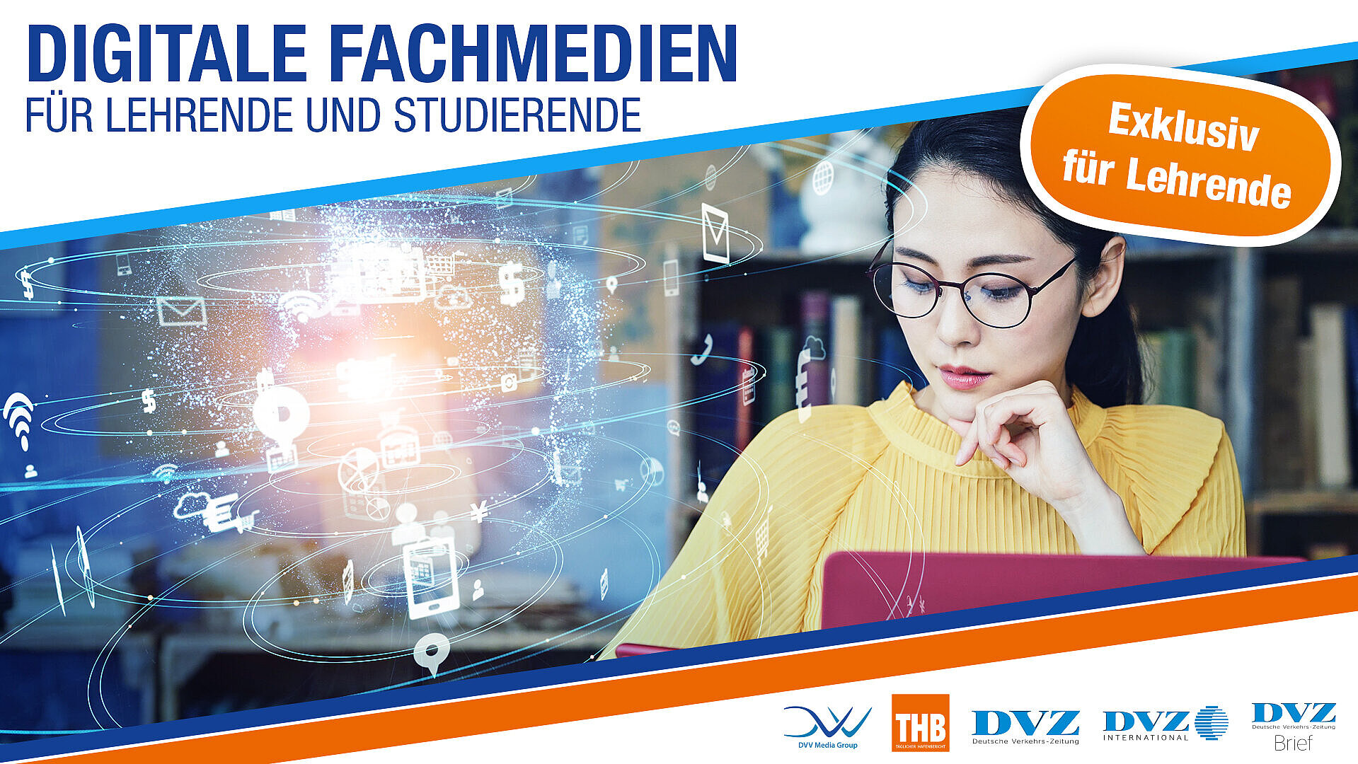 nutzen Sie unsere digitalen Fachmedien als fundierte Ergänzung, um Lehrinhalte gemeinsam mit Ihren Studierenden vertieft zu erörtern und zu analysieren. Unsere Medienpakete vereinen Hintergrundinformationen, aktuelle Nachrichten und Analysen. Mit der DVZ – Deutsche Verkehrs-Zeitung, DVZ International (englischsprachig), dem DVZ-Brief sowie dem THB – Täglicher Hafenbericht bieten wir Ihnen ein umfassendes Informationsspektrum zum Logistik- und Transportmarkt. Der entscheidende Vorteil: Alle Inhalte sind jederzeit und überall digital abrufbar – und für Sie als Lehrende kostenfrei.
