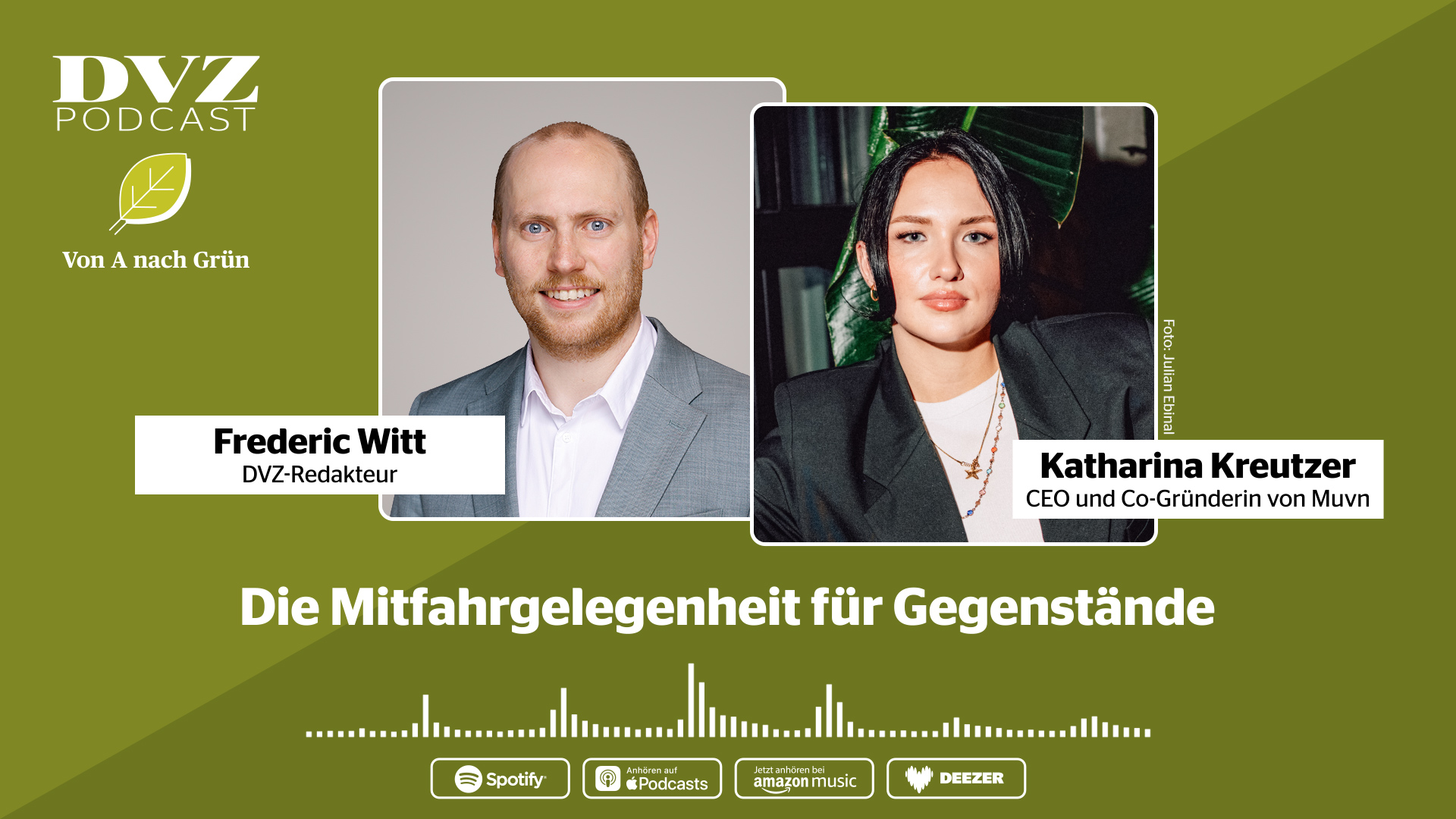 Wie können freie Autoplätze Teil einer nachhaltigen Logistik werden? In der neuen Folge von „Von A nach Grün“ spricht DVZ-Redakteur Frederic Witt mit Katharina Kreutzer, Co-Gründerin und CEO von Muvn. Sie erklärt, wie ungenutzte Fahrzeugkapazitäten zur Lieferlösung für alles vom Möbelstück bis zum Haustier oder vergessenen Schlüssel werden können. Darüber hinaus geht es im Podcast darum, wie sich Mobilität und Logistik clever miteinander verknüpfen lassen, welche Rolle Sharing-Modelle für weniger Leerfahrten und Emissionen spielen und wo die Grenzen solcher Konzepte liegen. Kreutzer erzählt auch von ihrem Weg in die Logistik, der Gründung von Muvn und davon, wie aus alltäglichen Transportproblemen ein skalierbares, nachhaltiges Geschäftsmodell entstanden ist.